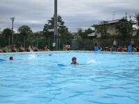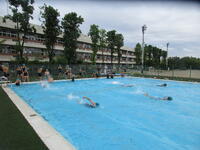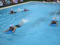 朝は涼しいくらいの気温でしたが、お日様に照らされて気温も上がり、2年生の水泳記録会を行うことができました。ビート板を使ってどれくらい泳げるか、ビート板を使わずにどれくらい泳げるか、自分の決めためあてを達成しようと頑張り抜く姿がたくさん見られました。