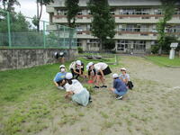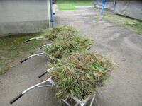 今日も、2時間目の休み時間と昼休みに、たくさんのお友達が草むしりボランティアに参加してくれました。校庭には、大きく育った草がたくさん生えていて、「こんなに大きいのとったよ」「こんなにむしりました」など成果を楽しみながら、お手伝いしてくれている姿がたくさんありました。今日も、手押し車3台分の草が集まりました。校庭には、草のないところが増えてきています。皆さん、ありがとうございます。