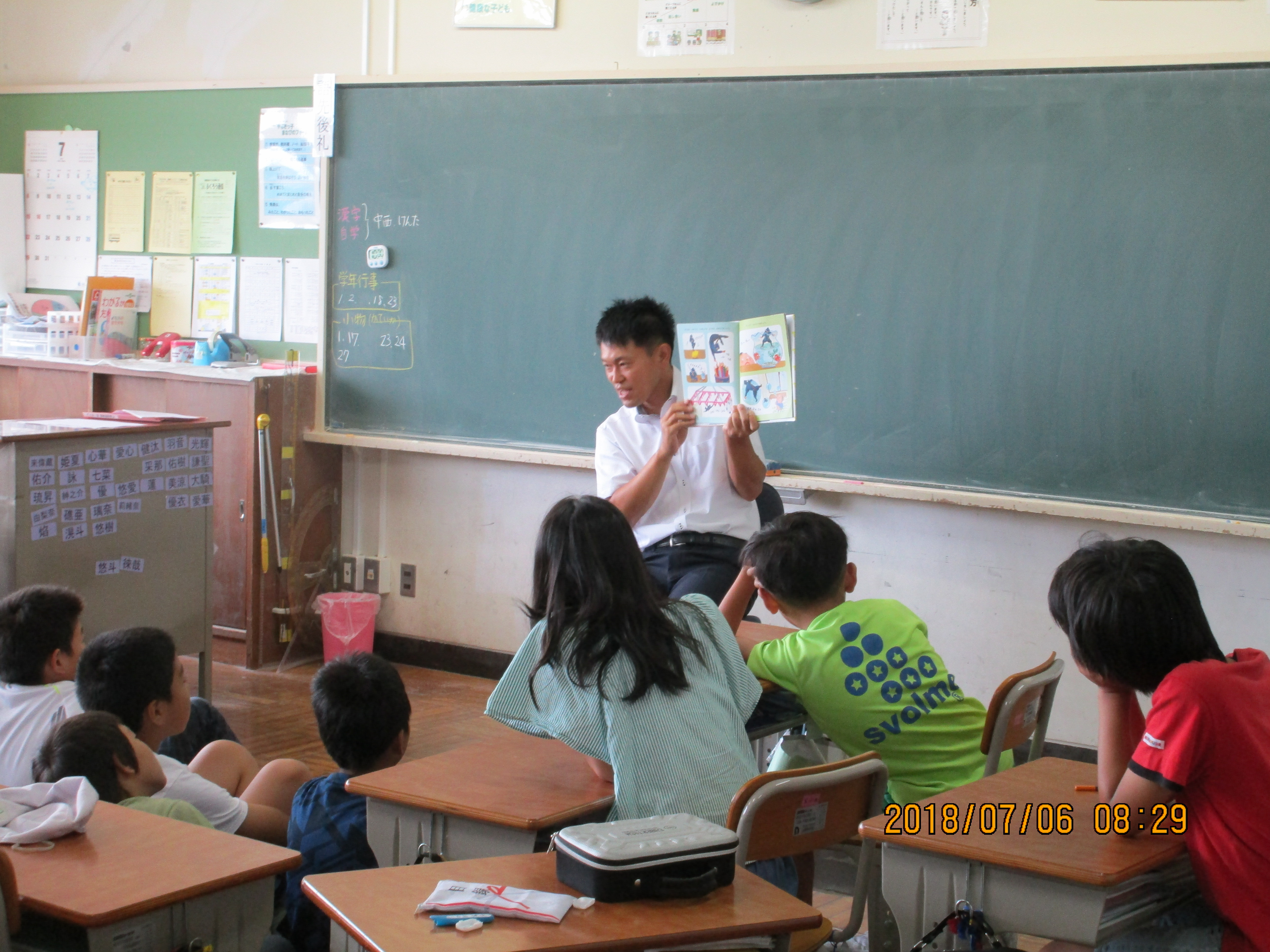 2018年7月6日 17時13分今年度も金曜日朝の読書タイムに図書ボランティアの皆さんや善郷小教職員が読み聞かせを行っています。ボランティアの皆さんによる読み聞かせは今日で2回目になります。校長室で打ち合わせをしてから各教室に向かいます。前日まで練習を重ねたり、小道具を持参されたり準備をしっかりなさっているので子ども達も夢中になって聞いています。これからもよろしくお願いします。